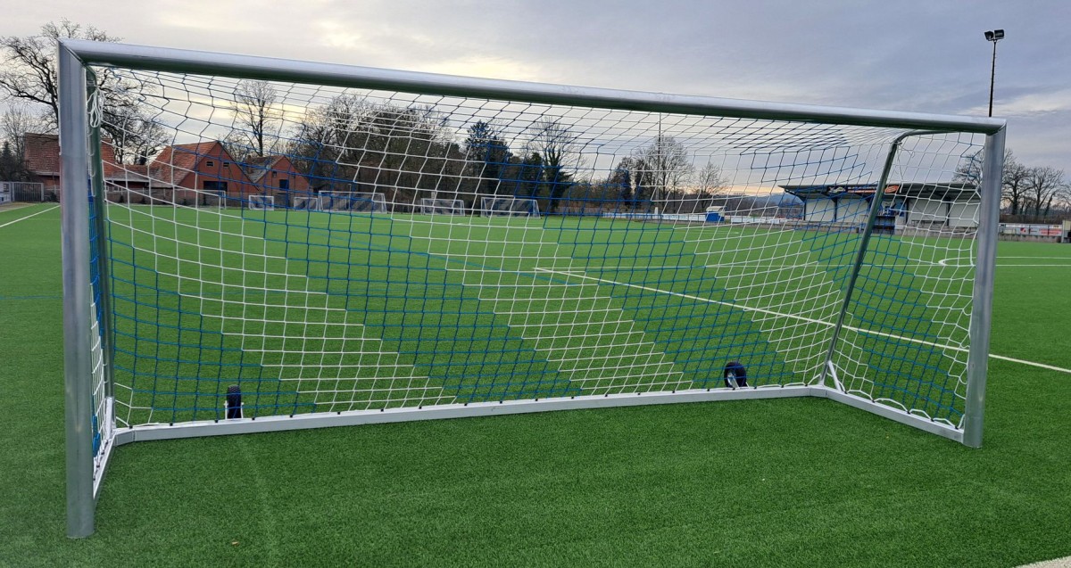 Konform nach FIFA-, DFB-Vorschriften und DIN EN 748Inklusiv:Stabiles Netz PP 4 mm mit 10 cm Maschen - wählbare Farben: Grün oder weiß