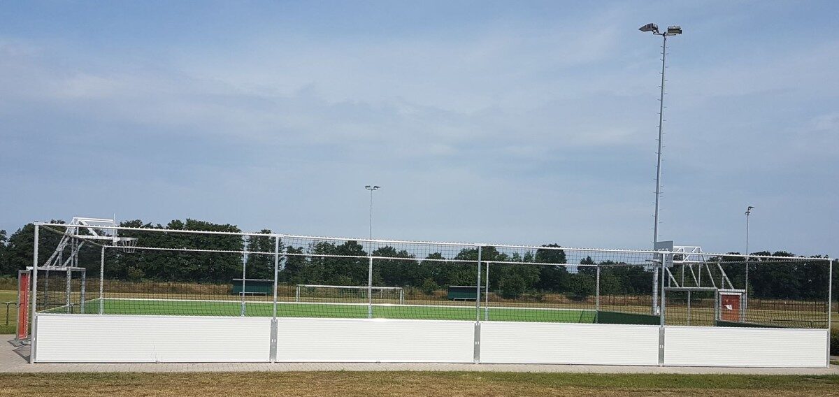 Arena stationär erfüllt alle Anforderungen an eine moderne Soccersportanlage, die auf eine langfristige Nutzung ausgerichtet ist. Wir planen den Court genau auf Ihre Anforderungen zugeschnitten. Bei der Konstruktion bzw. Bodenbefestigung richten wir uns an die vorhandenen Bodengegebenheiten. Die Bandenelemente bestehen aus stahlummantelten Verbundelementen. Die Bandenständer fertigen wir aus korrosionsfreiem Aluminium oder aus Stahl in feuerverzinkter Ausführung an. Die gesamte Konstruktion ist extrem wetterbeständig. Alle Spielfeldgrößen und Torgrößen sind möglich. Auch bei der Netzumrandung kann flexibel gewählt werden ob sie nur an der Torseite oder komplett umrandet angebracht wird.